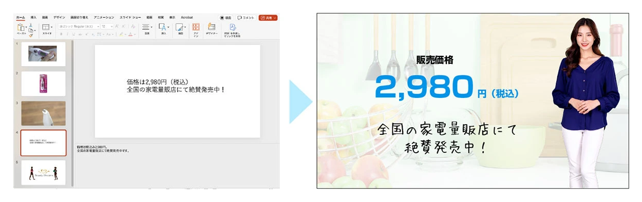 AIアバターとナレーションが御社の商品・サービスを解説。