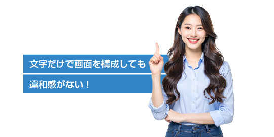 AIアバターが動いてしゃべるため、素材をむりやり動かすことも、画面デザインを凝る必要もありません。