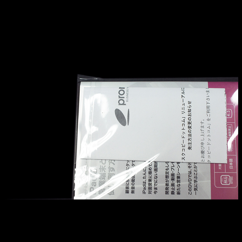 映画のDVDでよくみられるシュリンク包装と、記念品配布物で多用されるOP袋包装の2種類があり、OP袋は多少緩いため、中に印刷物を同封することができます。(A4までの紙を二つ〜四つ折りしたものをお送りください。)