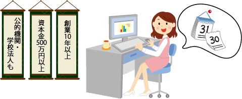 信用力等を鑑み、公的機関や学校法人、または「資本金500万円以上」「創業10年以上」を共に満たす企業様に対して有効とさせていただきます。