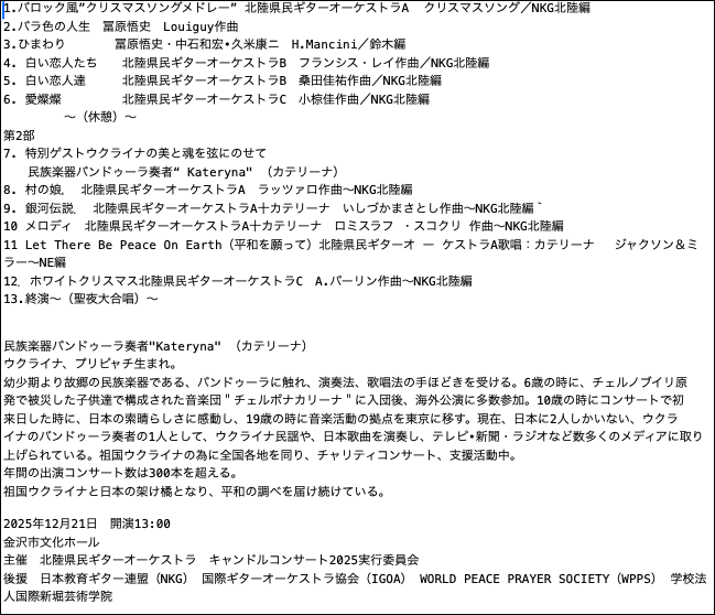 コンサートなどの演目を列挙したり、演者のプロフィールなどを書き込んだりする場合は、文字数が多くなります。指示書に書き込むのも一苦労ですし、スペースも限られています。